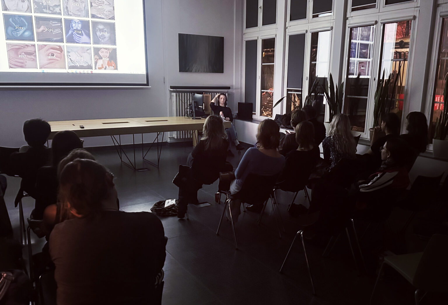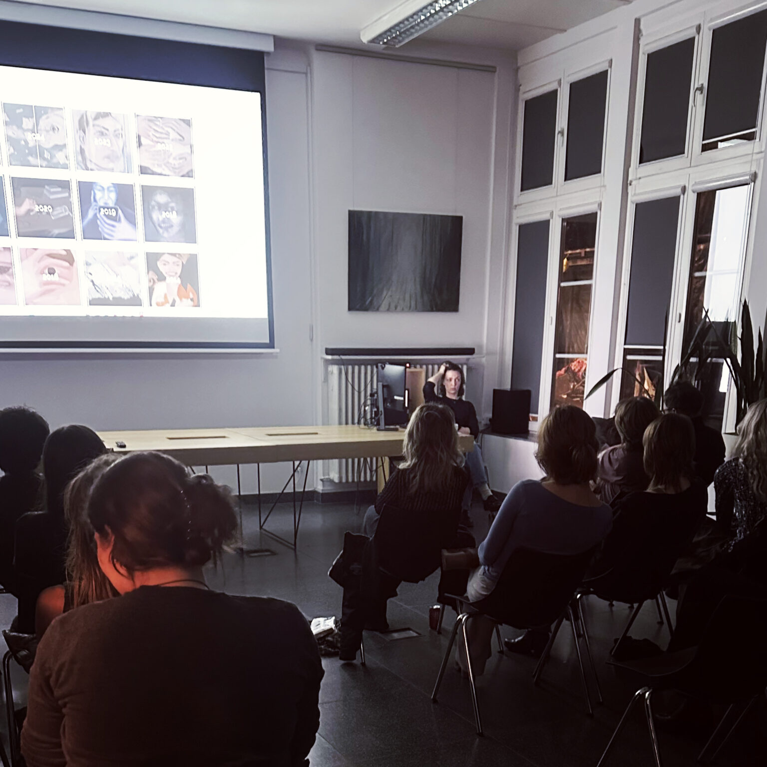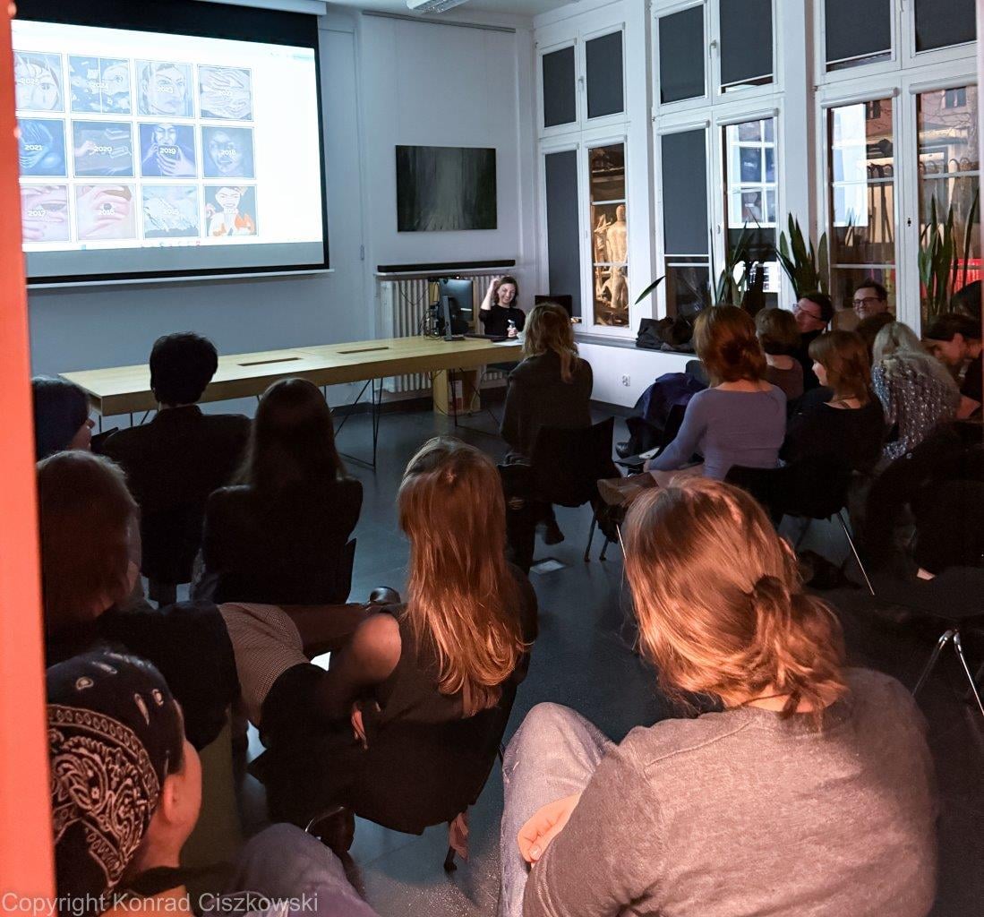 5 grudnia na Wydziale Malarstwa odbyło się spotkanie z Karoliną Jabłońską – malarką oraz współtwórczynią grupy i galerii Potencja. Artystka opowiedziała o studenckich czasach na Akademii Sztuk Pięknych w Krakowie, przebytej drodze twórczej i najbardziej aktualnych projektach oraz realizacjach. Studentki i studenci mogli również usłyszeć o sile przyjaźni, pracy w kolektywie czy roli anegdoty i przypadku w artystycznej karierze.