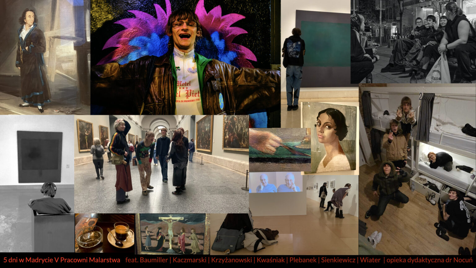 Oprócz regularnych zajęć i spotkań „przy pracy” przewidujemy współpracę z instytucjami zewnętrznymi, „wyjście” z uczelni, a także spotkania z artystkami i artystkami, wspólne przeżywanie bieżących zjawisk w sztuce.