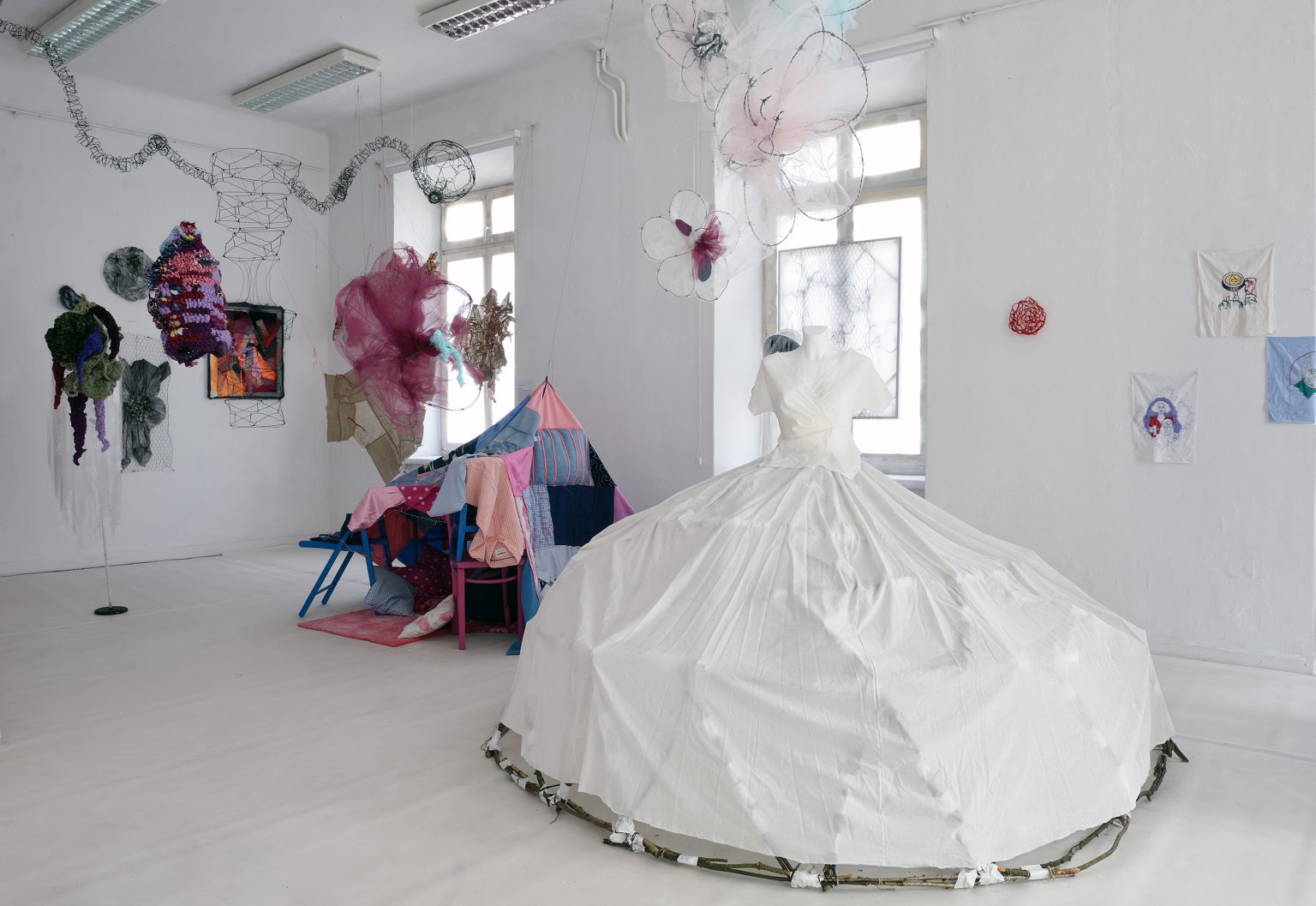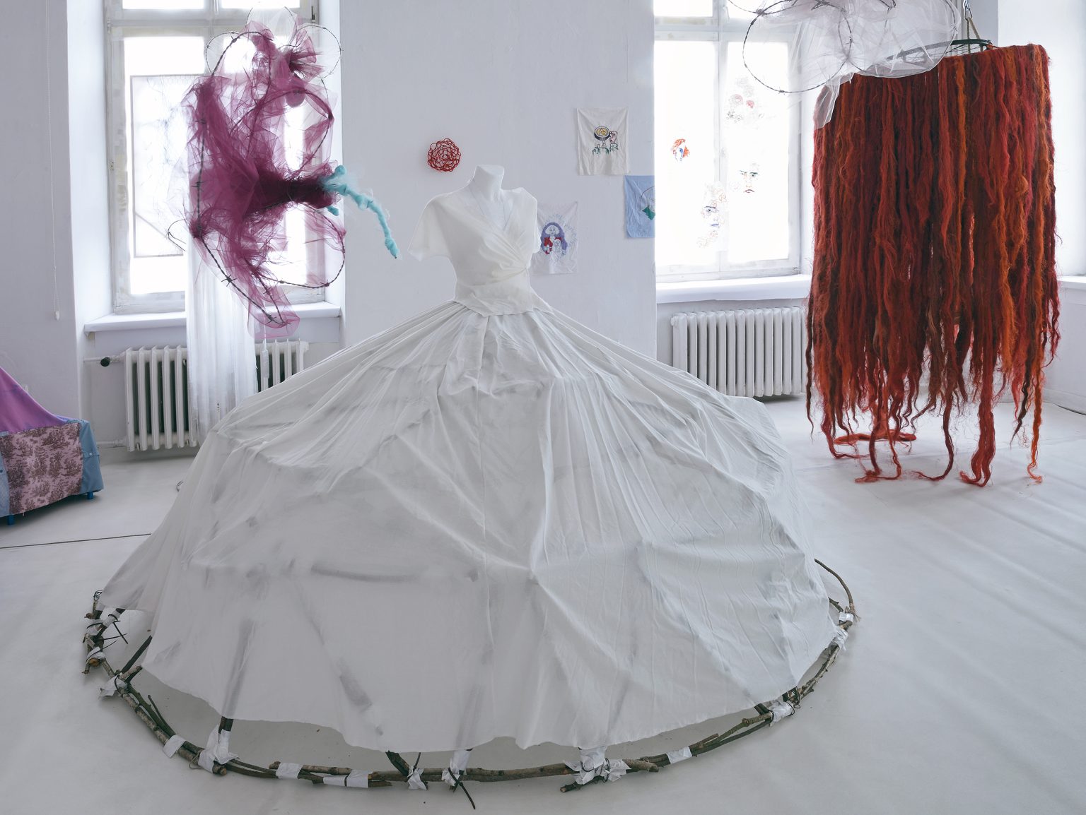 Tkaniny rzeźbiarskie, tworząc nie tylko pojedyncze obiekty ale i instalacje przestrzenne z użyciem różnych materiałów takich jak drut, metal, papier, drewno oraz ogromna gama tworzyw sztucznych.